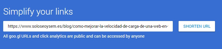 La url que queríamos acortar: https://www.soloseoysem.es/blog/como-mejorar-la-velocidad-de-carga-de-una-web-en-wordpress/